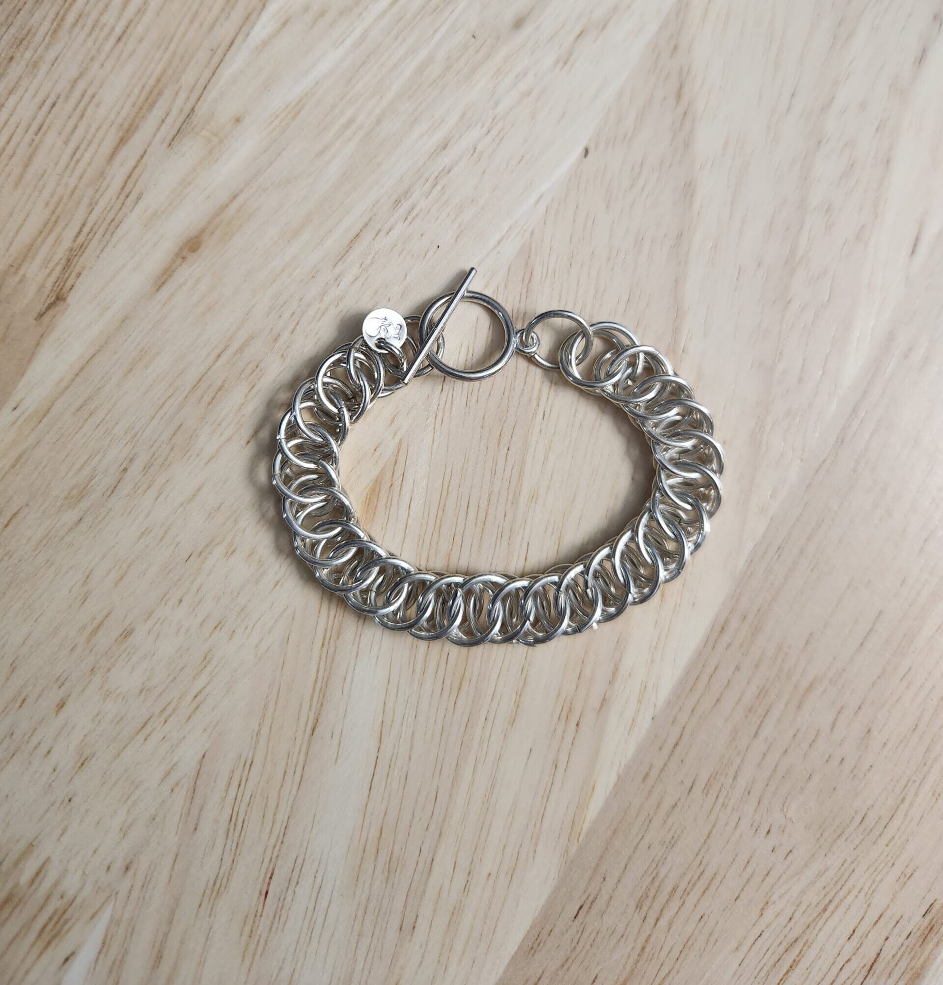 Discover refined elegance with this Half Persian Bracelet, where traditional chainmaille weaving meets contemporary style. The distinctive interlocking pattern creates a fluid, dynamic look that’s both visually striking and surprisingly comfortable to wear. Whether you’re a chainmaille enthusiast or exploring metalwork jewelry for the first time, this bracelet offers the perfect balance of serious artistry and lighthearted sophistication.