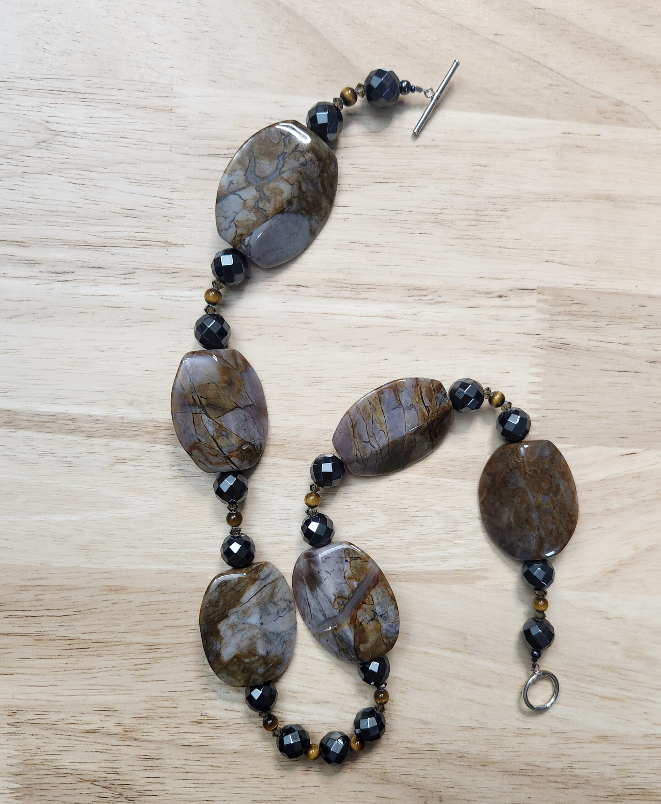 - Sterling Silver Clasp | Swarovski Crystals | Pietersite | Hematite | Tiger Eye